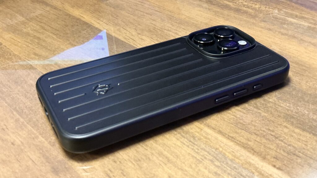 ケースの外側はアルミニウムですが、内部やフレーム部分にはTPU(熱可塑性ポリウレタン)が使用されており、落下時の衝撃を和らげる仕様になっています。デザイン性と保護性能のバランスが取れた仕上がりです。
